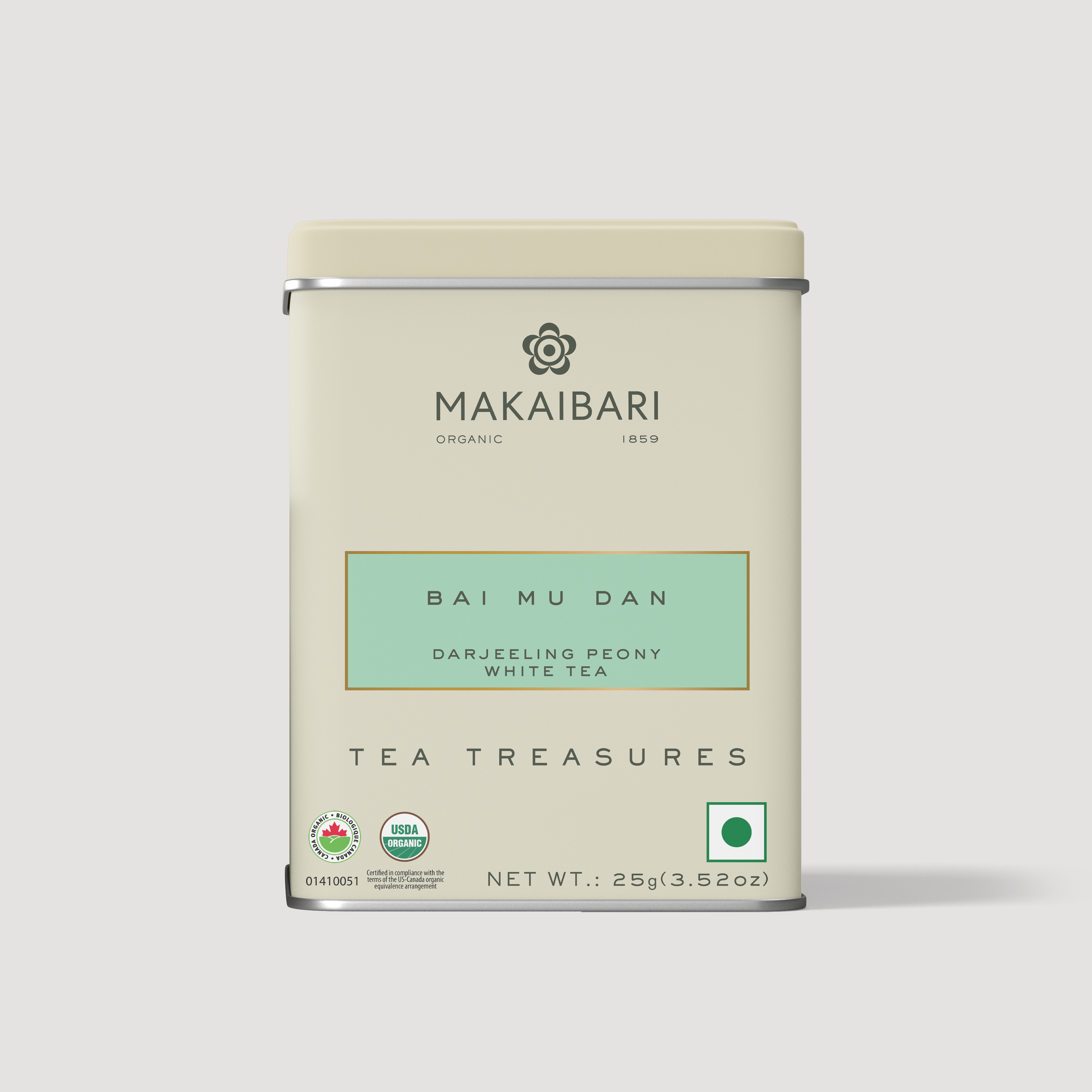 Makaibari BAI MU DAN | 25 gm Tin Caddy | Loose White Tea Pack