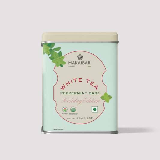 At the heart of this blend lies our finest organic white tea, handpicked from the mist-kissed slopes of Makaibari. Expertly balanced with the soothing undertones of peppermint, creating a harmonious balance that is both refreshing and comforting. This exquisite blend embodies the spirit of the season, capturing the essence of winter's crisp air and the warmth of holiday festivities.